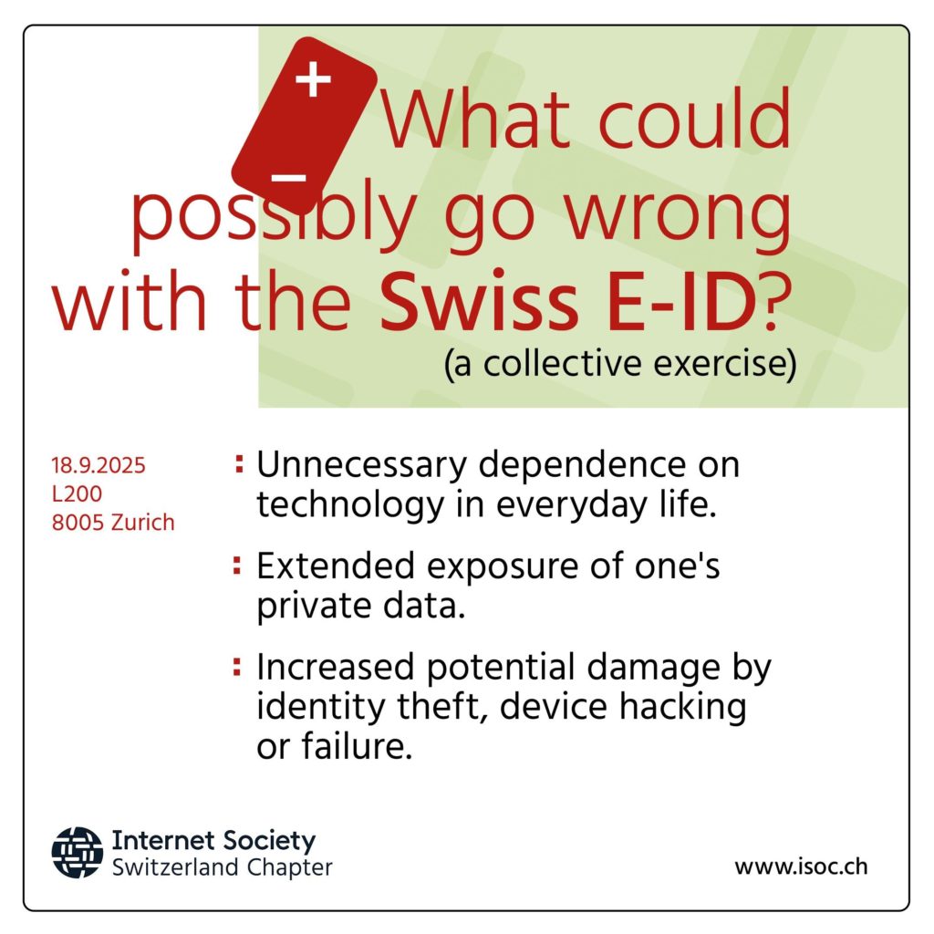 Some of these risks could be better addressed by the current law, most notably the lack of clear measures that ensure its optional character. And others, like the increased exposure to surveillance and various forms of attacks or accidents, are questioning the necessity of a Swiss E-ID in the first place.